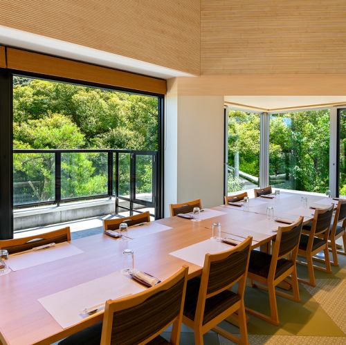 [A warm and relaxing atmosphere] All seats are provided in completely private rooms.You can relax and enjoy your own private time in your own private space.The interior, based on wood, is a clean and refreshing space that blends Japanese and Western styles.With large, open windows offering views of a large pond, this is a relaxing space where you can feel close to nature. Please enjoy your stay at our establishment.